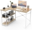 Der HOMALL Eckschreibtisch bietet ein flexibles L-förmiges Design mit verstellbaren Einlegeböden, die auf beiden Seiten angebracht werden können. Mit einem abnehmbaren Regal (Länge: 110 cm, Breite: 50-80 cm) und zwei offenen Ablageflächen, die nach Bedarf positioniert werden können, ist dieser Schreibtisch ideal für verschiedene Räume. Die hochwertige Spanplatte und der stabile Stahlrahmen gewährleisten eine Tragfähigkeit von über 100 kg.