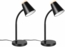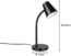 Moderne und praktische LED Schreibtischlampen im 2er SET, die mit ihrem schwarzen Korpus aus robustem Kunststoff stilvolle Akzente setzen. Die Lampen verfügen über einen biegsamen Schwanenhals, der eine flexible Ausrichtung der Beleuchtung ermöglicht. Mit einer Höhe von 36 cm bis maximal 42 cm und einem Fußdurchmesser von 13 cm sind sie platzsparend und ideal für Schreibtische sowie als Nachttischlampen geeignet. Jede Lampe ist mit einem fest verbauten LED Modul (4,5 Watt, 500 Lumen) in Warmweiß ausgestattet.