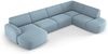 Das Micadoni Panorama Ecksofa Erin ist der ideale Rückzugsort für bis zu fünf Personen. Mit einer Gesamtbreite von 375 cm und ergonomisch gestalteten Armlehnen bietet es sowohl Komfort als auch Stil. Der luxuriöse samtige Stoff in Hellblau und die strapazierfähige Oberfläche mit 100.000 Scheuertouren garantieren Langlebigkeit und Eleganz. Die hochwertige Polsterung aus hochelastischem Polyurethan-Schaumstoff sorgt für ein angenehmes Sitzerlebnis.
