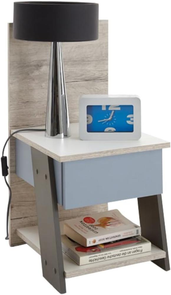 - Vielseitige Farbauswahl: Die Nachtkonsole ist in der Farbkombination Sandeiche Nb/weiß/Lava/Denim erhältlich und lässt sich so optimal an Ihren Einrichtungsstil anpassen.