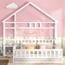 Das Kinderbett in Form eines Hauses bietet Ihrem Kind ein sicheres und spaßiges Schlafumfeld. Hergestellt aus hochwertigem Kiefernholz und MDF in Weiß, misst das Bett 140x190 cm und hat eine Belastbarkeit von 150 kg. Ein 32 cm hohes Geländer sorgt für zusätzlichen Schutz, während der mitgelieferte Nachttisch für Ordnung im Schlafzimmer sorgt. Das raumhohe Design erleichtert den Zugang zum Bett.
