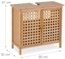 Der Waschbeckenunterschrank aus Bambus (ID: 10041308) bietet Ihnen zusätzlichen Stauraum im Badezimmer. Mit einem natürlichen Design und dekorativen Türen in Gitteroptik setzt er stilvolle Akzente. Die Gesamtmaße betragen 61 x 66 x 30 cm (H x B x T), der Innenraum misst 51 x 53 x 22 cm (H x B x T). Eine Siphonaussparung von 8 x 18 cm (B x T) sorgt für eine einfache Installation. Die Traglast beträgt 8 kg im Innenraum und 10 kg auf der Ablage.