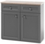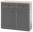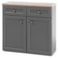 Die Schuhkommode Toskana kombiniert modernes Design mit praktischen Stauraumlösungen für Ihren Eingangsbereich. Mit einer grauen Front und einem Oberboden in Timber Wood Optik schafft sie eine stilvolle Atmosphäre. Der Korpus in Grau sorgt für eine harmonische Ausstrahlung. Ausgestattet mit zwei Türen und zwei Schubkästen bietet sie großzügigen Stauraum für Schuhe und Accessoires.