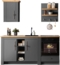 - Set-Bestandteile: Kommode, Wandpaneel, Hängeschrank, Herdumbau
