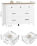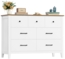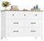 Die HOMECHO Kommode in Weiß mit einer braunen Platte bietet Ihnen mit ihren 7 Schubladen ausreichend Stauraum für Kleidung, Handtücher und Accessoires. Mit den Abmessungen von 106 x 40 x 81 cm und einer praktischen Höhe von 9 cm über dem Boden ist sie ideal für deutsche Wohnungen. Die kratzfeste Melamin-Oberfläche und die leisen Kugelführungen sorgen für eine einfache Handhabung und Langlebigkeit.