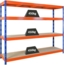 Das PROREGAL Profi Schwerlastregal Rhino EXTRA BREIT in Blau/Orange bietet mit seinen Abmessungen von 180 x 240 x 60 cm eine ideale Lösung für die Lagerung von schweren und sperrigen Gütern. Mit einer Tragkraft von 450 kg pro Ebene und einer Gesamttraglast von 1800 kg ist es besonders stabil. Die 8 mm starken Spanplatten-Ebenen und die robuste Stahlkonstruktion garantieren Langlebigkeit und Sicherheit. Die flexible Höhenverstellung der Fachböden ermöglicht eine individuelle Anpassung an Ihre Bedürfnisse.