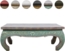 Der Wohnzimmertisch ist etwa 100 cm lang, 50 cm breit und 40 cm hoch. Mit diesen Maßen kann man sich in asiatischer Tradition direkt vor den Opiumtisch setzen oder ihn als Couchtisch vor einer Sofagarnitur nutzen. In jedem Fall bietet der Wohnzimmertisch einen exotischen Blickfang im orientalischen Design.