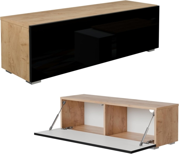PLATAN ROOM Fernsehschrank TV-Lowboard 105/140 / 160/210 / 280 In Weiß Hängend Oder Stehend Hochglanz Matt (105 x 30 x 32, Eiche Gold/Schwarz Hochglanz) Bild 1
