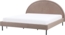 Stilvolles Doppelbett Bouclé MARGUT in Taupe mit einem hochwertigen Bouclé-Stoff und passendem Lattenrost. Das charmante Ehebett überzeugt durch sein halbrundes Kopfteil, das eine besondere Note in Ihr Schlafzimmer bringt. Der weiche Bezug sorgt für hohen Komfort, während die robuste Konstruktion Langlebigkeit garantiert. Mit einer Liegefläche von 180x200 cm und einer maximalen Belastung von 350 kg ist es ideal für entspannte Nächte.