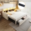 Das Merax Einzelbett Daybett ist ein multifunktionales Polsterbett mit den Maßen 90x190 cm, das sich durch eine ausziehbare Verlängerung auf 180 cm Breite erweitern lässt. Es bietet praktischen Stauraum im Kopfteil, integrierte LED-Lichtleisten und Steckdosen sowie zwei Schubladen für zusätzlichen Platz. Der hautfreundliche Samtstoff in Beige sorgt für eine moderne Ausstrahlung, während der strapazierfähige Lattenrost Stabilität und Komfort gewährleistet.