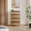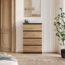 Die Lookway Kommode HANA M4 vereint elegantes Design mit praktischer Funktionalität. Mit einer Breite von 70 cm, einer Höhe von 97 cm und einer Tiefe von 40 cm bietet sie vier geräumige Schubladen zur optimalen Aufbewahrung Ihrer Gegenstände. Hergestellt aus laminierter Spanplatte mit 16 mm Stärke, überzeugt sie durch grifflose Schubladenfronten und ABS-Kanten, die für hohe Widerstandsfähigkeit sorgen.