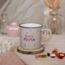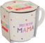 Becher in Emailloptik "Lieblingsmama" im nostalgischen Vintage-Look. Dieser Kaffeebecher aus New Bone China Porzellan mit einem Volumen von 35 cl bringt Farbe und frischen Wind an jeden Tisch. Mit einem Durchmesser von 9 cm und einer Höhe von 8,4 cm ist er ideal für die Kaffeerunde oder das Büro. Der Becher ist liebevoll mit dem Spruch „Lieblingsmama“ gestaltet und wird in einer passenden Geschenk-Banderole geliefert.