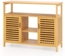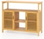 Der COSTWAY Badkommode aus natürlichem Bambus vereint Funktionalität und Eleganz. Mit den Gesamtmaßen von 100 x 35 x 80 cm bietet dieser Badezimmerschrank reichlich Stauraum, einschließlich eines offenen Regals und zwei geschlossenen Schränken. Die Kippsicherung und schützenden Fußpolster sorgen für Stabilität und Bodenschutz. Das lackierte Lamellendesign fördert die Luftzirkulation und erleichtert die Reinigung.