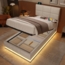 Kommen Sie in den Genuss des LVHOM Polsterbetts in Beige, das mit einem modernen LED-Ambientelicht und einem praktischen USB-Ladeport ausgestattet ist. Das Einzelbett mit einer Liegefläche von 90 cm x 200 cm bietet dank des federleichten Hydrauliksystems großzügigen Stauraum für Ihre persönlichen Gegenstände. Die bombenfeste Metallkonstruktion sorgt für eine maximale Belastbarkeit von 250 kg und garantiert einen stabilen Schlafkomfort.