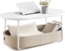 VASAGLE Couchtisch oval, Tisch mit Stauraum, Beistelltisch, Wohnzimmertisch mit Korb aus Stoff, modern, Metallrahmen, mattweiß-Kamelbraun LCT222W10