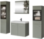 Das Badmöbel-Set Madrit I in der Farbe Nebelgrün bietet eine stilvolle und funktionale Lösung für Ihr Badezimmer. Es umfasst einen Hochschrank, einen Waschbeckenschrank, einen Hängeschrank, einen Spiegel und ein Waschbecken aus Konglomerat. Die Möbel sind aus robusten Laminatplatten gefertigt und verfügen über eine moderne LED-Beleuchtung. Alle Maße sind ca. Maße.