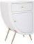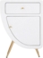 Der Dmora Nachttisch Bonorva vereint modernes Design mit praktischer Funktionalität. Mit den Abmessungen 60 x 32 x 79 cm bietet er ausreichend Platz für Ihre Nachtutensilien in einer Schublade und auf der oberen Ablagefläche für Bücher und Dekorationen. Die elegante Kombination aus Weiß und Gold sowie die abgerundeten Linien verleihen Ihrem Schlafzimmer einen stilvollen Akzent. Ideal für jedes Schlafzimmer, ob mit Doppelbett oder im Gästezimmer.