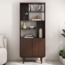 Der Wohnzimmerschrank SIMONA vereint modernes Design mit praktischen Funktionen. Mit seinen Abmessungen von 80 x 188 x 37 cm bietet er sechs offene Fächer für Bücher und Deko sowie zwei Türen mit Push-to-open-Funktion für einen grifflosen Look. Der Innenraum ist mit zwei höhenverstellbaren Einlegeböden ausgestattet, während die 22 cm hohen Massivholz-Standfüße für Stabilität sorgen. Die nussbaumfarben lackierte Oberfläche aus Kiefer Massivholz setzt stilvolle Akzente.