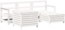 vidaXL 5-tlg. Garten-Sofagarnitur in Weiß aus massivem Kiefernholz ist die ideale Ergänzung für Ihren Garten, Ihre Terrasse oder Ihren Balkon. Das robuste Latten-Design sorgt für eine optimale Luftzirkulation und verhindert Wasseransammlungen, während die vielseitigen Möbelstücke sowohl als Sitzgelegenheit als auch als Couchtisch genutzt werden können. Mit einem modularen Design lässt sich die Garnitur flexibel anpassen.