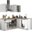 Moderne Eckküche in Artisan-Eiche Optik mit viel Stauraum. Die Kombination aus mattem Weiß und der Arbeitsplatte in Artisan Eiche sorgt für ein harmonisches Gesamtbild. Ausgestattet mit einem Elektrokochfeld mit Glaskeramikoberfläche, Backofen und Dunstabzugshaube. Die Montage ist dank der detaillierten Anleitung einfach und schnell, ideal für Anfänger.
