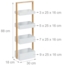 Das Relaxdays Badregal mit 4 Ablagen bietet eine praktische Lösung zur Aufbewahrung im Badezimmer. Mit kompakten Maßen von 88 x 30 x 18 cm und einem Gewicht von 2,7 kg ist es ideal für kleine Ecken und Nischen. Das schlichte Design aus Bambus und MDF in den Farben Natur und Weiß fügt sich harmonisch in verschiedene Einrichtungsstile ein. Die Ablagen sind in unterschiedlichen Höhen angeordnet und bieten Platz für Kosmetik, Haartrockner und mehr.