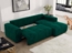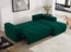 Ecksofa mit Schlaffunktion und Bettkasten, L-form Couch, lose Kissen, Polstersofa - MONIVA - Dunkelgrün Velours - rechte Seite