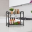 Praktisches Gewürzregal aus Metall für Ihre Küche, Ihr Badezimmer oder Ihren Schreibtisch. Mit einem modernen Mesh-Design aus robustem Stahl bietet dieses freistehende Regal zwei Ablagen, die ausreichend Platz für Gewürze, Badartikel, Make-Up oder Büromaterial bieten. Die Montage erfolgt schnell und ohne Werkzeug.