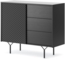 Die Kommode Sideboard Raven vereint modernes Design mit praktischer Funktionalität. Mit ihren Abmessungen von 97 cm Breite, 38 cm Tiefe und 83 cm Höhe bietet sie viel Stauraum. Der Korpus und die Schubladen bestehen aus 16 mm starken Spanplatten mit einer pflegeleichten laminierter Kunststoffoberfläche, während die Tür aus 18 mm starkem MDF gefertigt ist. Die grifflosen Schubladen mit Vollauszug und die Push-to-open Funktion runden das durchdachte Konzept ab.