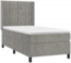 Das vidaXL Boxspringbett mit Matratze & LED in Hellgrau (80 x 200 cm) aus Samt und mit Härtegrad H2 [3139529] bietet Ihnen einen erholsamen Schlaf und wird zum Blickfang in Ihrem Schlafzimmer. Der luxuriöse Samtstoff sorgt für ein angenehmes Gefühl, während das höhenverstellbare Kopfteil und die bunten LED-Lichter für zusätzlichen Komfort und eine verspielte Atmosphäre sorgen. Die Taschenfederkernmatratze absorbiert Geräusche und Stöße, während die hautfreundliche Matratzenauflage für zusätzlichen Komfort sorgt.