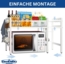 GR Öß E FLEXIBEL EINSTELLBAR: Unser Küchenregal lässt sich individuell anpassen: Die Länge ist von 40 cm bis 64 cm verstellbar, und die Ablagenhöhe kann flexibel zwischen 35 cm und 43 cm eingestellt werden. STABIL UND RUTSCHFEST: Mit robusten, rutschfesten Füßen bietet dieses Regal ausgezeichnete Stabilität und sicheren Halt, selbst bei schweren Küchenutensilien. HOCHBELASTBARES MATERIAL: Das Küchenregal besteht aus starkem, pulverbeschichtetem Metall, das nicht nur langlebig, sondern auch stabil genug ist, um bis zu 30 kg Gewicht zu tragen. INKLUSIVE 8 PRAKTISCHER HAKEN: Mit 8 mitgelieferten Haken bietet das Regal zusätzlichen Platz für Kochutensilien wie Küchenmesser, Schneebesen oder Pfannenwender, die einfach seitlich aufgehängt werden können. ABMESSUGEN: Breite 40-64 cm, Höhe 46 cm, Tiefe 36 cm, Material: Metall, Farbe: Weiß, Gewicht: 2,8 kg.