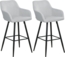 Set mit 2 Barstühlen CASMALIA aus hellgrauem Samtstoff. Diese modernen Barhocker bieten mit ihrer hohen Lehne und praktischen Fußstützen optimalen Komfort. Die breiten Sitzflächen sind mit dicken Schaumstoffpolstern ausgestattet. Elegante Steppungen und schlanke, schwarze Metallbeine verleihen den Hockern einen stilvollen Look. Schutzkappen an den Beinen sorgen dafür, dass Ihr Fußboden beim Verschieben unversehrt bleibt.