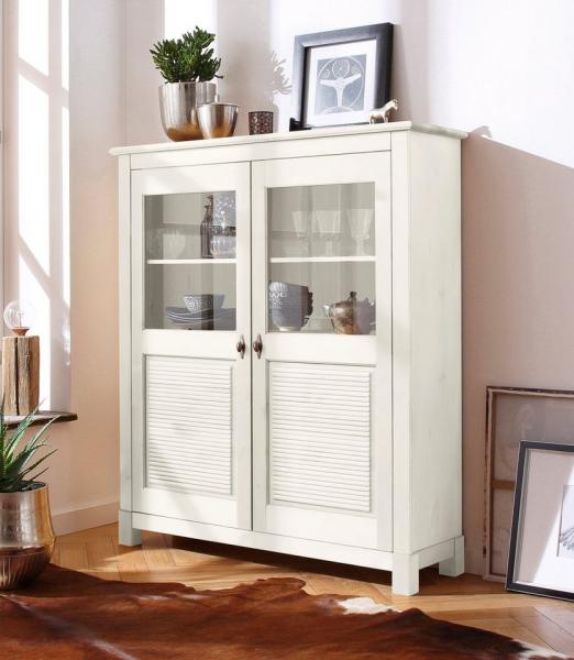 Funktion und wohnliches Design reichen sich bei dem hochwertig verarbeiteten Highboard »Rauna« von Home affaire harmonisch die Hand. Ganz im zeitlosen Landhausstil gehalten, zeichnet es sich durch das FSC®-zertifizierte Massivholz aus. Struktur und Maserung sind sichtbar und geben dem Raum ein ausgesprochen natürliches Flair. Die Türen mit ansprechenden Metallgriffen sind im unteren Bereich mit schicken Fräsungen gestaltet. Weiter oben befinden sich Glaseinsätze, die den Blick auf den geräumigen Innenraum freigeben. In den Vitrinenfächern können persönliche Schätze wie Gläser, eine Schale oder Skulpturen ideal ins Blickfeld der Gäste gerückt werden. Der Vitrinenschrank ist vielseitig einsetzbar. Besonders wirkungsvoll kommt er in der Diele, im Essbereich oder im Wohnzimmer zur Geltung. Die veredelten Oberflächen sind angenehm pflegeleicht und können bei Bedarf ganz simpel mit einem leicht feuchten Tuch gesäubert werden. Mit dem Charme der Natur bereichert das hochwertig verarbeitete Home affaire Highboard »Rauna« jedes Zuhause.