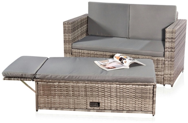 Lounge Gartenmöbel Sofa Bank Tisch klappbar Rattan Gartenset Sitzmöbel grau NEU