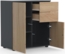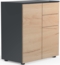 Die VCM Kommode "Dalosa" vereint modernes Design mit praktischer Funktionalität. Mit einer Höhe von 77 cm, einer Breite von 70 cm und einer Tiefe von 39 cm bietet sie ausreichend Stauraum durch zwei Drehtüren und grifflose Schubladen mit push-to-open Funktion. Das zeitlose anthrazitfarbene Design in Kombination mit Honig-Eiche sorgt für eine stilvolle Ergänzung in jedem Raum.