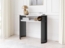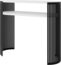 Konsolentisch Fahugin in der eleganten Farbkombination Schwarz / Arktisches Weiß. Mit seinen ovalen Maßen von 100 cm Breite, 86 cm Höhe und 30 cm Tiefe bietet dieser Tisch eine stilvolle Ergänzung für jeden Raum. Die Laminatplatte mit einer Stärke von 18 mm und das pulverbeschichtete Stahlgestell sorgen für Stabilität und Langlebigkeit.