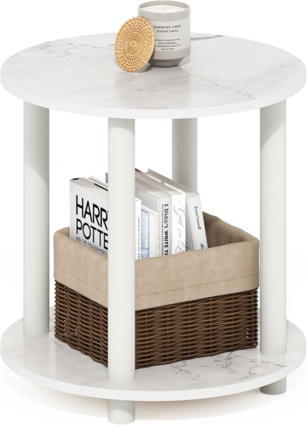 Furinno Turn-N-Tube 2-stufiger runder Beistelltisch aus Holz, Marmorweiß