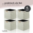 Die Lycce Regalkörbe Kallax Boxen im 4er Set sind die ideale Lösung für stilvolle und funktionale Aufbewahrung. Mit den Maßen 33 x 33 x 31 cm passen sie perfekt in jedes Kallax-Fach von Ikea. Hergestellt aus hochwertigem Cordstoff, bringen sie Ordnung und Wärme in Ihr Zuhause. Die Boxen sind faltbar, waschbar und bieten durch ihren stabilen Boden einen festen Stand.