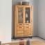 Die Vitrine "Tom-I" in Wildeiche / Schwarz aus teilmassiver Eiche ist ein stilvoller Blickfang für Ihr Zuhause. Mit den Abmessungen von 110 x 200 x 40 cm (BxHxT) präsentiert sie Ihre Lieblingsstücke elegant und platzsparend. Der Korpus ist außen mit Eiche Echtholz furniert und innen mit einer Eiche-Nachbildung versehen, während die massive Eichenfront das robuste Design unterstreicht. Pulverbeschichtete Metallfüße in Schwarz und Eisen-Griffe runden die moderne Optik ab.