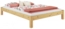 Bodenfreiheit: ca. 23 cm Höhe Bettkante: ca. 36 cm (Sitzhöhe)Einlegetiefe: ca. 10 cm Bettpfosten: stabile 67x67 mm Bettseiten: stabile 130x25 mm (Langseiten mit durchgehender Rostauflage) Anlieferung erfolgt zerlegt mit Markenbeschlägen und guter Beschreibung für leichten Aufbau.