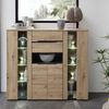 Ausstattung 2 Glas-/Holztüren 2 Holztüren Türen mit Softclose 2 Schubkästen mit Softclose und Selbsteinzug 1 offenes Fach 1 Einlegeboden 6 Glasböden inklusive LED-Beleuchtung