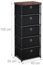 Diese Kommode im Industrial-Design bietet mit ihren geräumigen Stoffschubladen viel Stauraum für verschiedene Gegenstände. Ob im Wohnzimmer, Schlafzimmer oder Flur – sie ist vielseitig einsetzbar. Die dekorative Ablage in Vintage-Holzoptik setzt Dekoartikel oder Pflanzen perfekt in Szene. Der schwarze Metallrahmen verleiht der Kommode eine moderne Note.