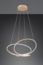 Die große LED Pendelleuchte DARVIN aus dem Hause Trio Leuchten ist durch ihr luftig leichtes Erscheinungsbild ein schöner Hingucker und vereint Funktionalität und modernes Design. Ausgestattet mit einem DIP SWITCH Schalter am Baldachin der Leuchte ist die Lichttemperatur stufenweise über 2300 - 3000 Kelvin (warmweiß) und 4000 Kelvin (neutralweiß) einstellbar. Zudem ist die Hängeleuchte durch mehrmaliges Schalten kurz hintereinander über einen herkömmlichen Lichtschalter in 3 Stufen dimmbar, so dass für jede Anwendung das passende Lichtszenario wählbar ist. Mit ihrer Breite von 84cm eignet sich die Hängelampe auch für größere Einsatzbereiche und fügt sich durch die Farbgebung in Gold matt in nahezu jeden Wohnstil ein. Das fest verbaute LED sorgt mit einer Leistung von 52 Watt und 6.700 Lumen für effiziente Beleuchtung über dem Esstisch oder dem Wohnzimmertisch.
