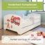 Für zusätzliche Sicherheit sorgt der abnehmbare Rausfallschutz, der verhindert, dass Ihr Kind während des Schlafens aus dem Bett fällt. Die abgerundeten Kanten des Bettes sorgen ebenfalls für Sicherheit und verhindern Verletzungen beim Toben oder nächtlichen Träumen.