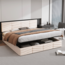 Polsterbett mit höhenverstellbarem Kopfteil,205.5*165*90-95 cm, Beige Stauraumbett,inklusive Schaummatratze