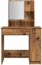 Dieser Schminktisch mit Spiegel in Altholz-Optik ist eine stilvolle Ergänzung für Ihr Schlafzimmer. Mit den Abmessungen 86,5 x 35 x 136 cm (B x T x H) bietet er ausreichend Platz zur griffbereiten Aufbewahrung Ihrer Kosmetika. Der hochwertige Holzwerkstoff sorgt für eine glatte Oberfläche und ist feuchtigkeitsbeständig. Der elegante Spiegel ermöglicht eine klare Sicht beim Schminken, während die praktische Tür zusätzlichen Stauraum für Ihre Utensilien bietet.