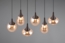 Die 6-flammige Pendelleuchte LUMINA aus dem Hause Trio Leuchten im Retro Design eignet sich auch für größere Einsatzbereiche und ist Leuchte und Dekoelement in Einem. Die sechs amberfarbigen Glas Lampenschirme in unterschiedlichen Formen und Größen sorgen für warmes Licht und lassen sich bei Montage auf unterschiedliche Längen einstellen, so dass die mehrflammige Hängeleuchte individuell ausgerichtet werden kann. Der 93cm breite Lampenbaldachin aus Metall in Schwarz matt und die schwarzen Abhängungen komplettieren das tolle Erscheinungsbild dieser ausgefallenen Hängelampe, die ihren Einsatzort über dem Esstisch, der Kochinsel, Kücheninsel, im Esszimmer und im Wohnzimmer findet. Die Pendellampe ist für 6 E14 Leuchtmittel bis max. 40 Watt geeignet, die nicht im Lieferumfang enthalten sind. Bei Einsatz geeigneter Leuchtmittel ist die Leuchte extern über die Hausinstallation dimmbar.