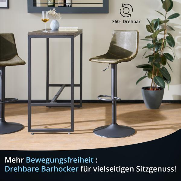 KHG Barhocker 6er Set 360° drehbar höhenverstellbar (61-82cm) Kunstleder Grün Industrial Look | Drehstuhl Barstuhl mit Rückenlehne Fußstütze 110kg belastbar