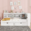 Das Holzbett mit Schubladen, Lattenrost und Regal bietet Ihnen eine praktische Lösung für Ihr Schlafzimmer. Mit einer Liegefläche von 90x200 cm und einer maximalen Belastbarkeit von 120 kg ist es ideal für Jugendliche. Das Kopfteil ist mit USB-Anschlüssen und Steckdosen ausgestattet, sodass Sie bis zu 4 Geräte gleichzeitig aufladen können. Die Schubladen lassen sich bequem unter das Bett rollen und bieten zusätzlichen Stauraum.