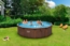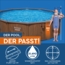 Hydrium™ Stahlwandpool Komplett-Set mit Sandfilteranlage Ø 490 x 130 cm, Holz-Optik (Palisander), rundDer Hydrium™ Stahlwandpool von Bestway® ist die perfekte Lösung für Familien, die auf der Suche nach einer dauerhaften, aber erschwinglichen Poollösung im heimischen Garten sind! Mit seiner extrem langlebigen Konstruktion und seinen innovativen Funktionen können Sie sich auch durch die richtige Pflege Sommer für Sommer an diesem Pool erfreuen! Langlebige Konstruktion: Dieser Pool wurde aus korrosionsbeständigem, verzinktem Stahl gefertigt, welcher diesem enorm langlebige Eigenschaften verleiht. Die Wände, der extrabreite Handlauf sowie der Rahmen bestehen zu 100 % aus verzinktem Stahl, um möglichen witterungsbedingten Einflüssen wie Korrosion etc. standhalten zu können. Die gerippte Struktur der Stahlwände sorgt für zusätzlichen Halt, damit Ihr Pool stets in Form bleibt. Die Poolfolie in ansprechender Kieselmosaik-Optik ist mit einer UV-beständigen Beschichtung versehen, die Verfärbungen oder Risse durch die Sonne verhindert. Einfacher Selbstaufbau: Dank der langlebigen Materialien kann der Pool das ganze Jahr lang aufgebaut bleiben, so dass Sie ihn problemlos in Ihre Gartengestaltung integrieren können. Das Set enthält nahezu alles, was Sie für den Aufbau benötigen. Als zusätzliche Werkzeuge benötigen Sie lediglich einen Schraubenzieher, Schraubenschlüssel sowie ein Messer! Lieferumfang: Im Set sind außerdem eine Sandfilteranlage, ein Oberflächenskimmer, eine Sicherheitsleiter, Bodenplane, Abdeckplane sowie ein ChemConnect™ Chemikaliendosierer enthalten. Die Sandfilteranlage bietet eine hervorragende Alternative zu einer Kartuschenfilterpumpe. Der integrierte Oberflächenskimmer dient als optimale Unterstützung des Filtersystem, indem bereits vorab grobe Verschmutzungen aus dem Wasser gefiltert werden und so gar nicht erst in die Sandfilteranlage gelangen können. Der ChemConnect™ Chemikaliendosierer sorgt für einen stabilen Chlorgehalt im gesamten Pool.