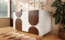 - Material: MDF mit Massivholzfüßen, weiße Oberfläche, schokoladenfarbene Leisten